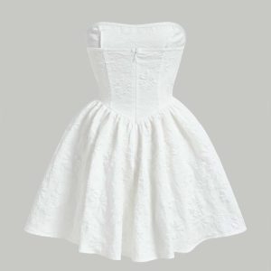 Women’s Dress Jacquard Flare Hem Tube Dress Dress IPADSA(White,Small)