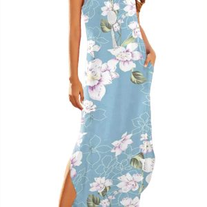 Women’s Casual Summer Sleeveless Dress Loose Split Maxi Dresses with Pockets