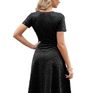 Women’s Summer Short Sleeve Casual Dresses V-Neck Floral Party Dress with Pockets
