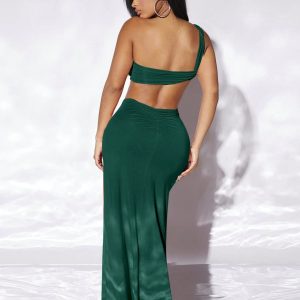 Women’s Dress One Shoulder Cut Out Split Thigh Dress Dress IPADSA (Color : Dark Green, Size : Small)