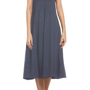 Women’s Casual Loose Plain Pleated Long Dress Short Sleeve Midi Dresses