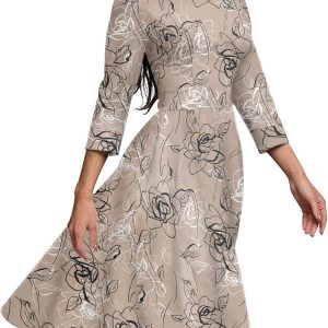 Women’s Floral Vintage Dress Elegant Midi Evening Dress 3/4 Sleeves