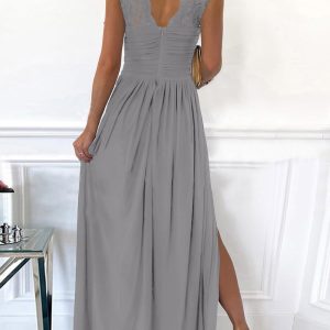 Womens 2025 Formal Dresses Wrap V-Neck Ruched Sexy Bridesmaid Wedding Guest Maxi Dresses