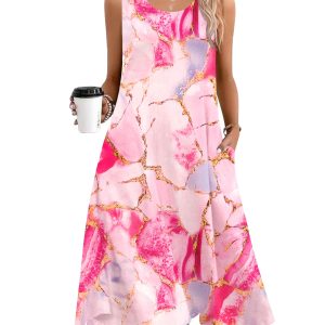 Womens Casual Dress for Summer Tank Dress Loose Flowy Beach Dress with Pockets Hankerchief Flare Midi Sundress 2025