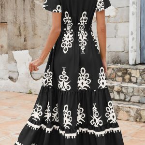 Womens 2025 Summer Casual V Neck Boho Maxi Dress Flowy Aline Bell Sleeve Tiered Floral Dresses with Pocket
