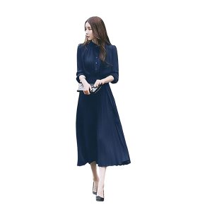 Womens Pleated Long Sleeve Loose Dress Casual Maxi Dresses with Tie Waist