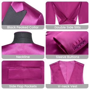 Women’s 3 Pieces Satin Suit Black Peak Lapel Fashion Outfits Casual Party Wedding Blazer Jacket Vest Pants Set