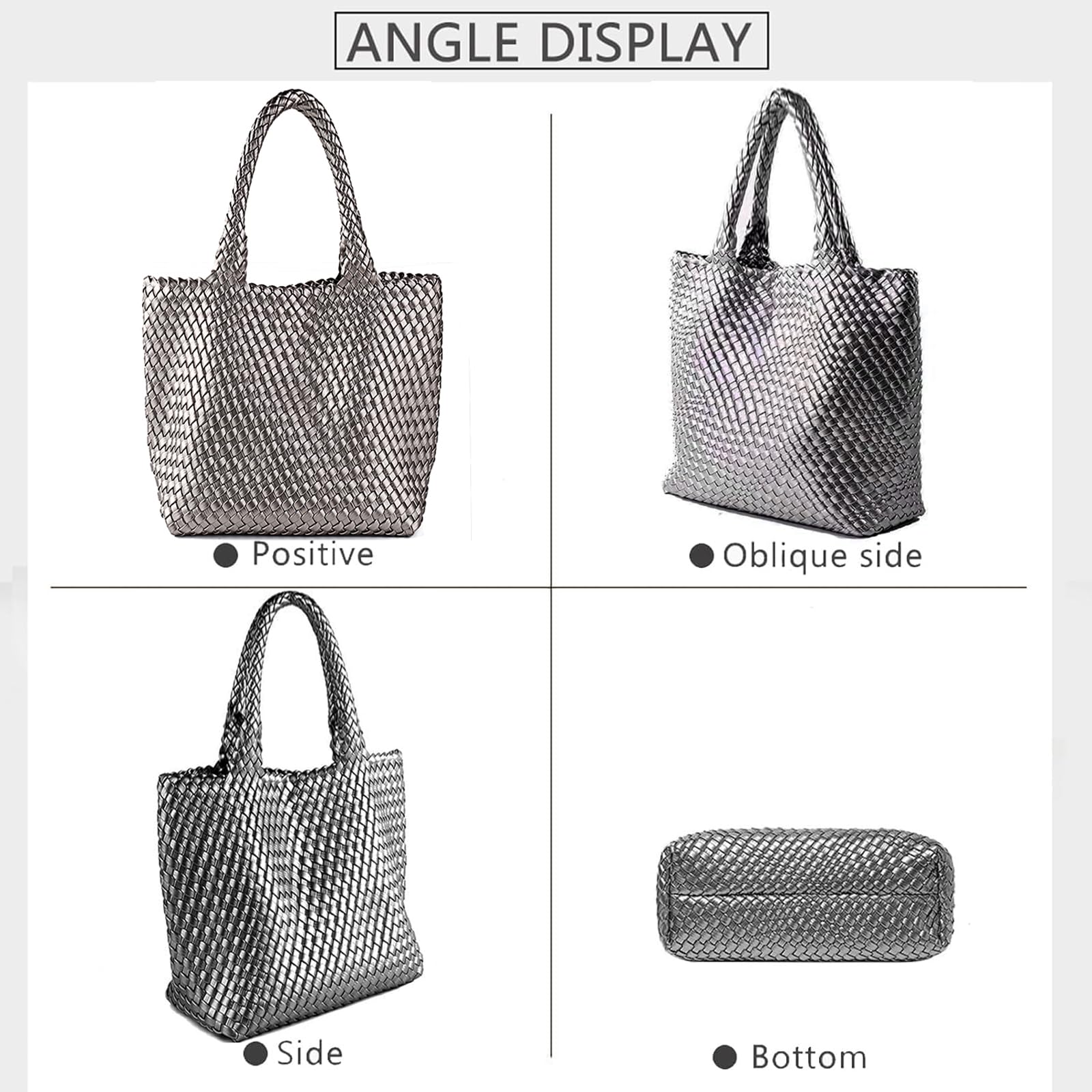 • Vegan Leather Material:The woven tote is made of soft high-quality vegan leather , very soft to touch and easy to wipe clean. No animals are harmed and it is good for the environment. Delicate woven detailing runs throughout the frame; inside is the same woven bag