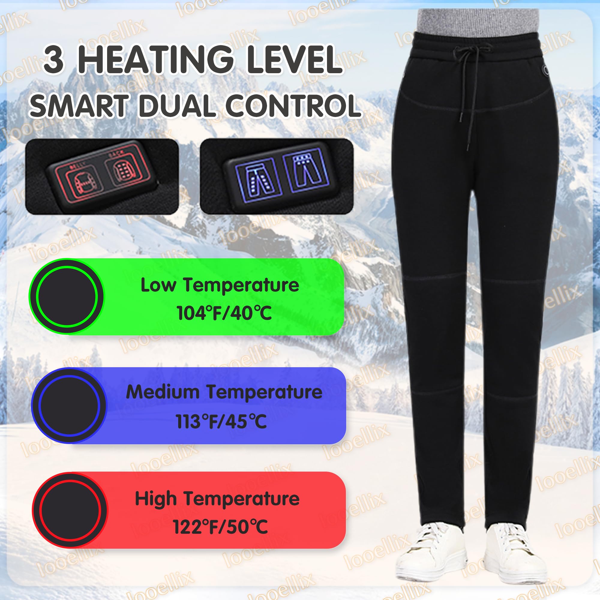 • INDOOR OR OUTDOOR—Iooellix rechargeable hunting thermal pants are made from cotton and polyester fibers and warm velvet lining, it can be worn as loungewear indoors. If you need to go outside, you can wear it under a trousers for added warmth