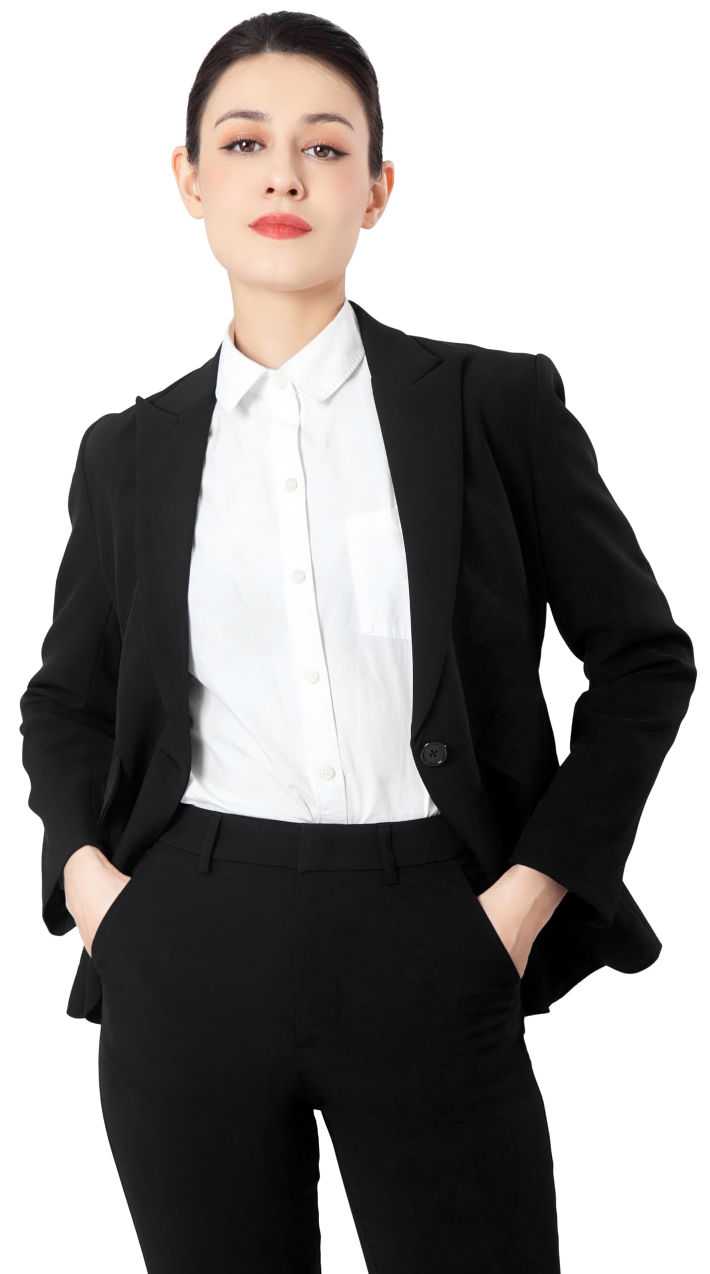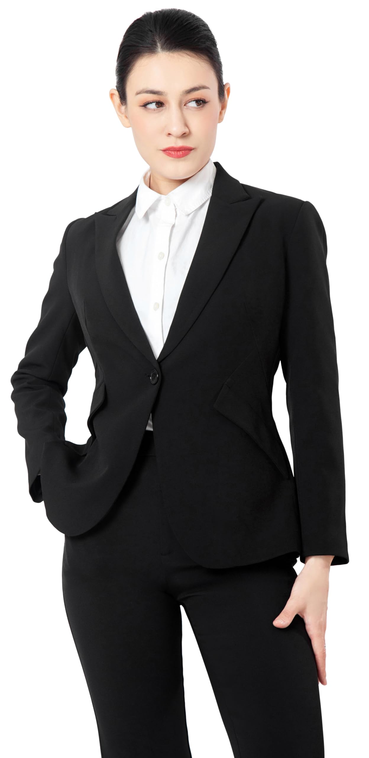 - Simple but not less sophisticated Design – Features a tailored blazer with a single-button closure, sharp lapels, and structured shoulders for a polished look.