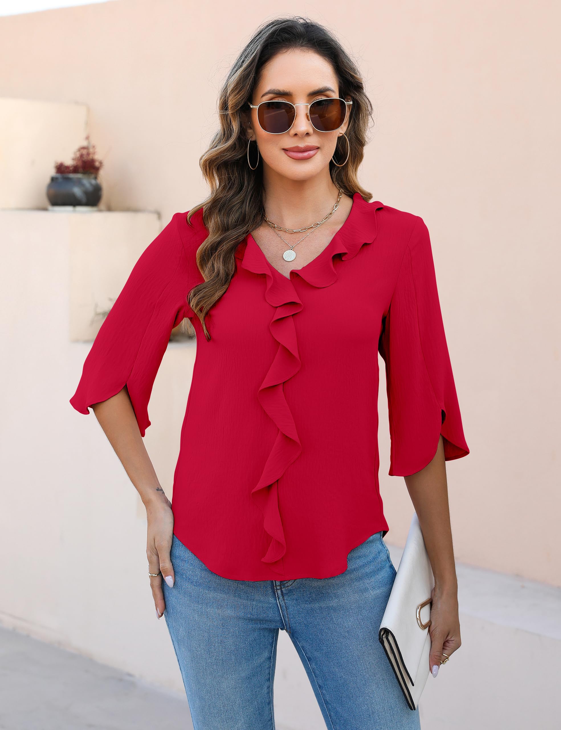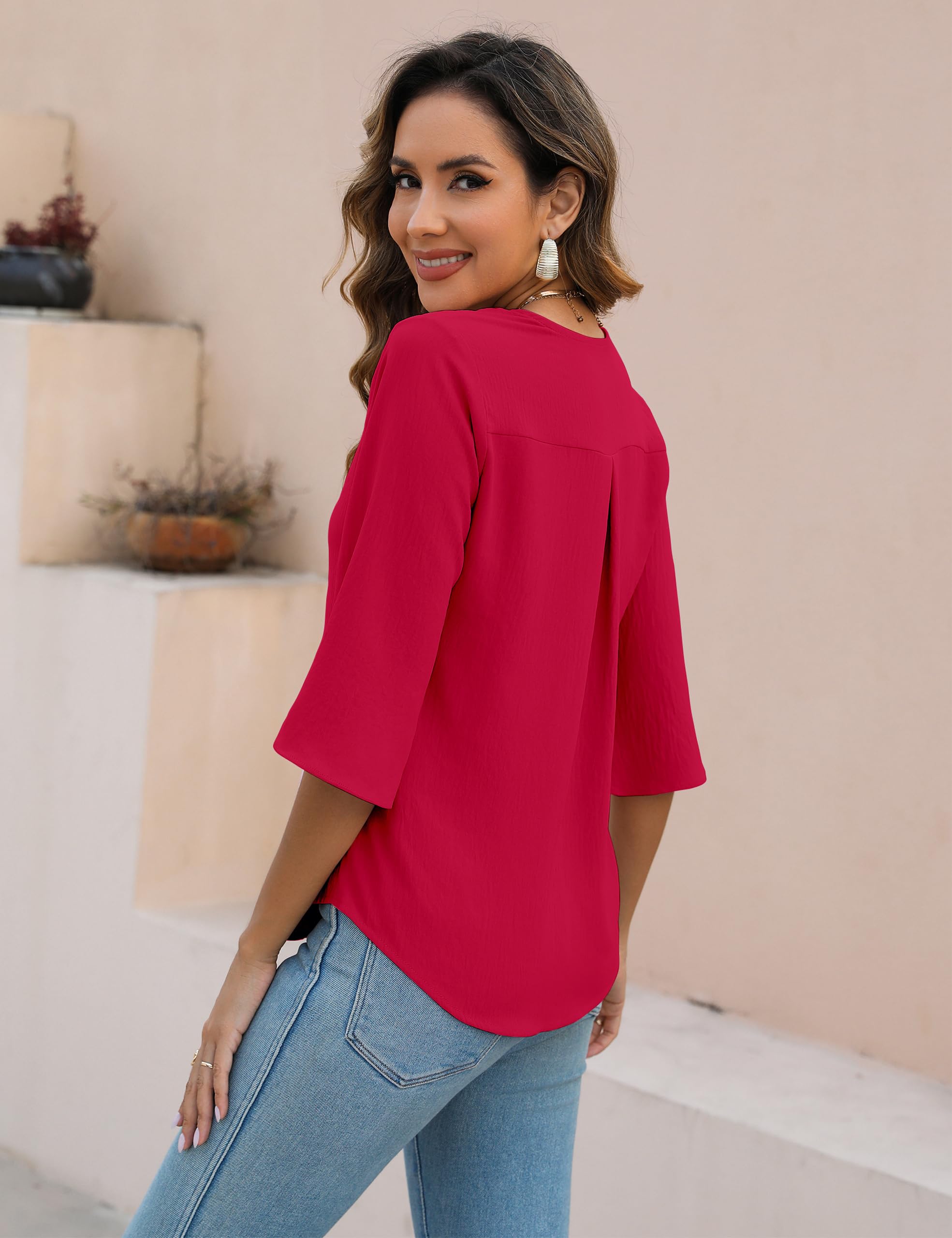 - FEMININE DESIGN – Featuring a flattering V-cut neckline and 3/4 length sleeves, tops for women trendy add a chic touch to your wardrobe. This elegant combination enhances your silhouette, ideal for achieving a polished look.