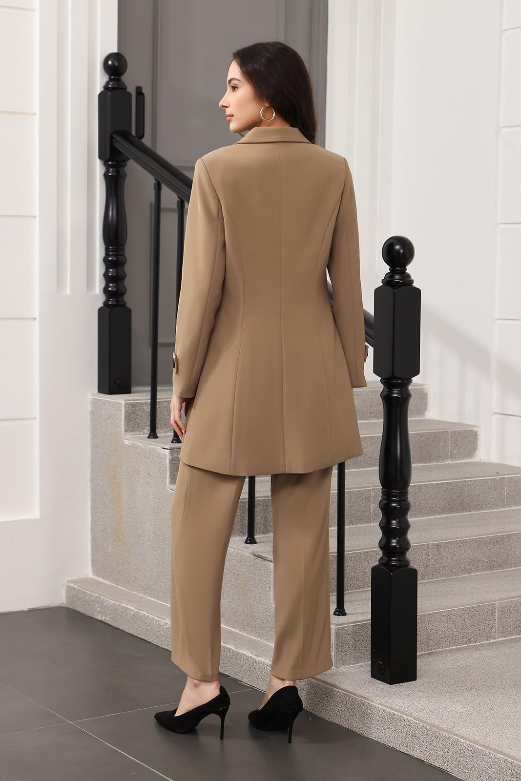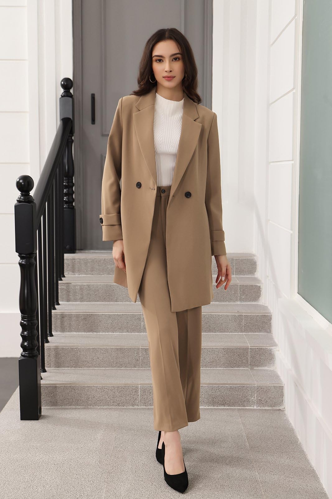 Women’s Suit 2 Piece Long Blazer Set Ladies Jacket Pantsuit Casual Outfits for Fall