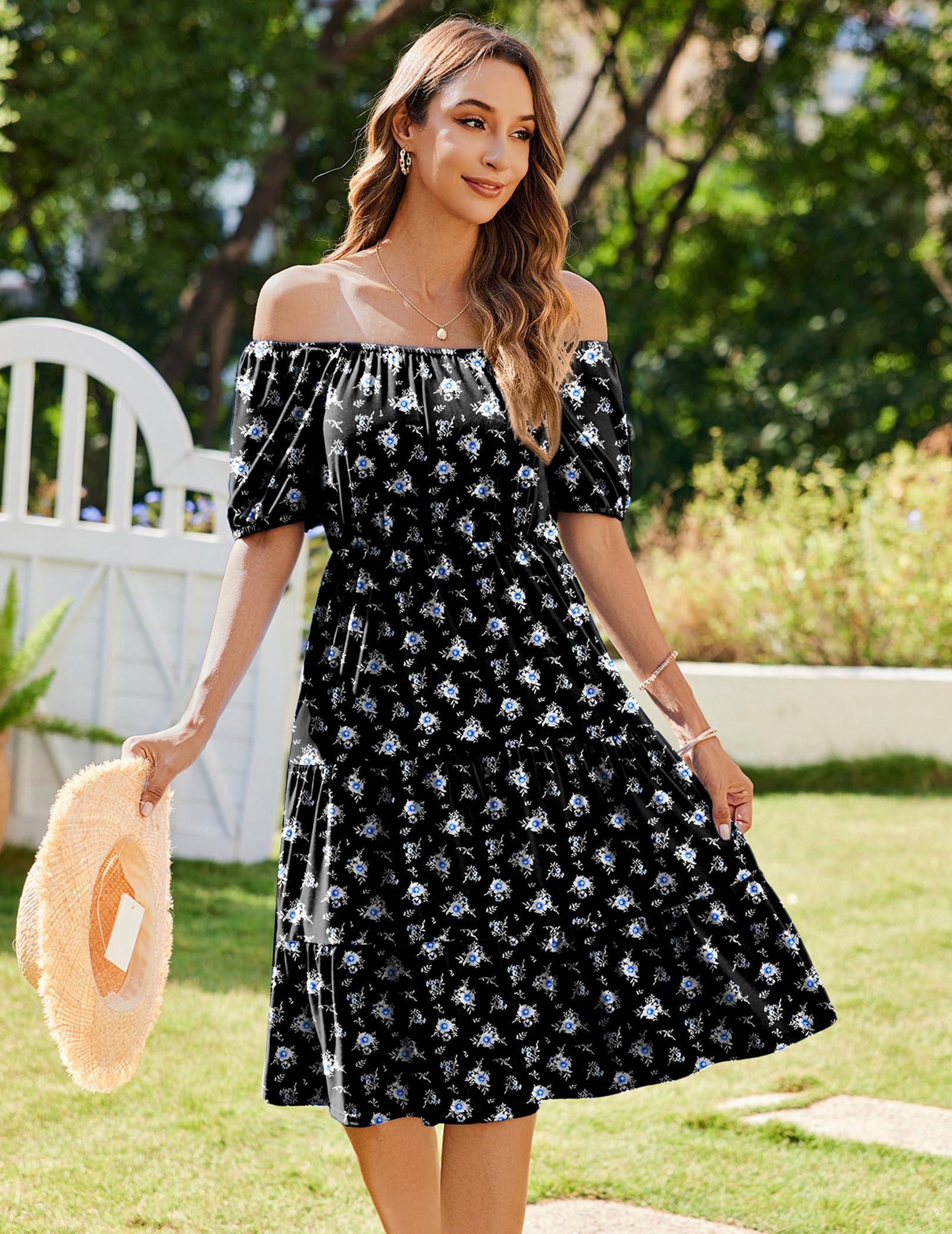 • 【Feature】: Womens 2025 summer dress/Women’s tiered ruffle dress/puff sleeve midi dress/ Short Sleeves dress/ Ruffle Hem dresses/ Square neck dresses/Knee Length Dress/ Loose fit dress/Solid floral dress.