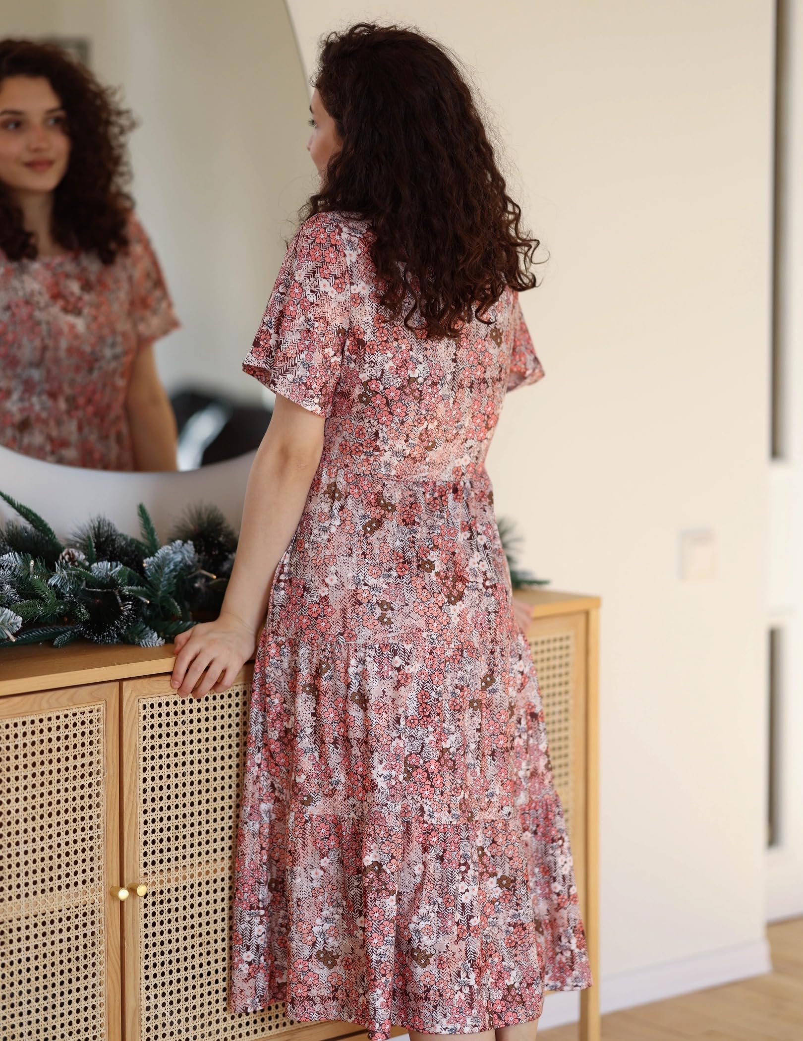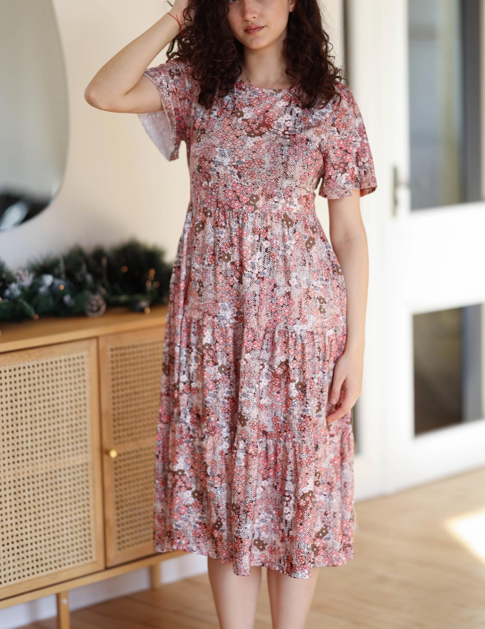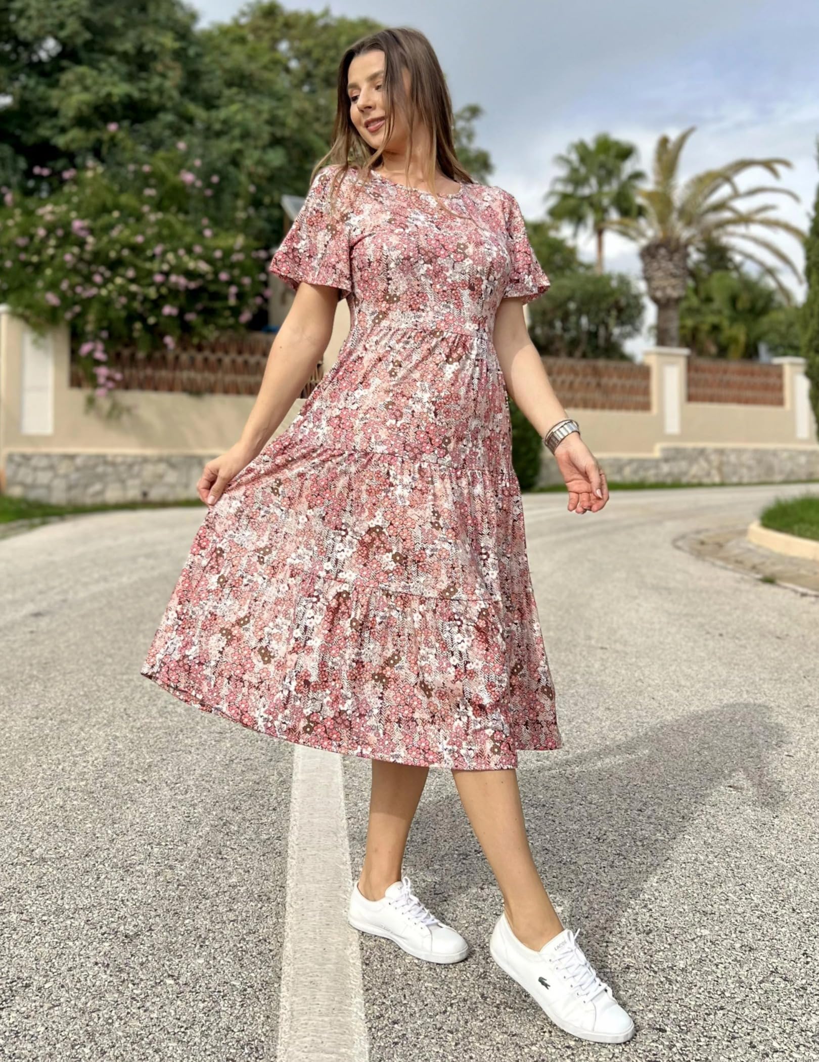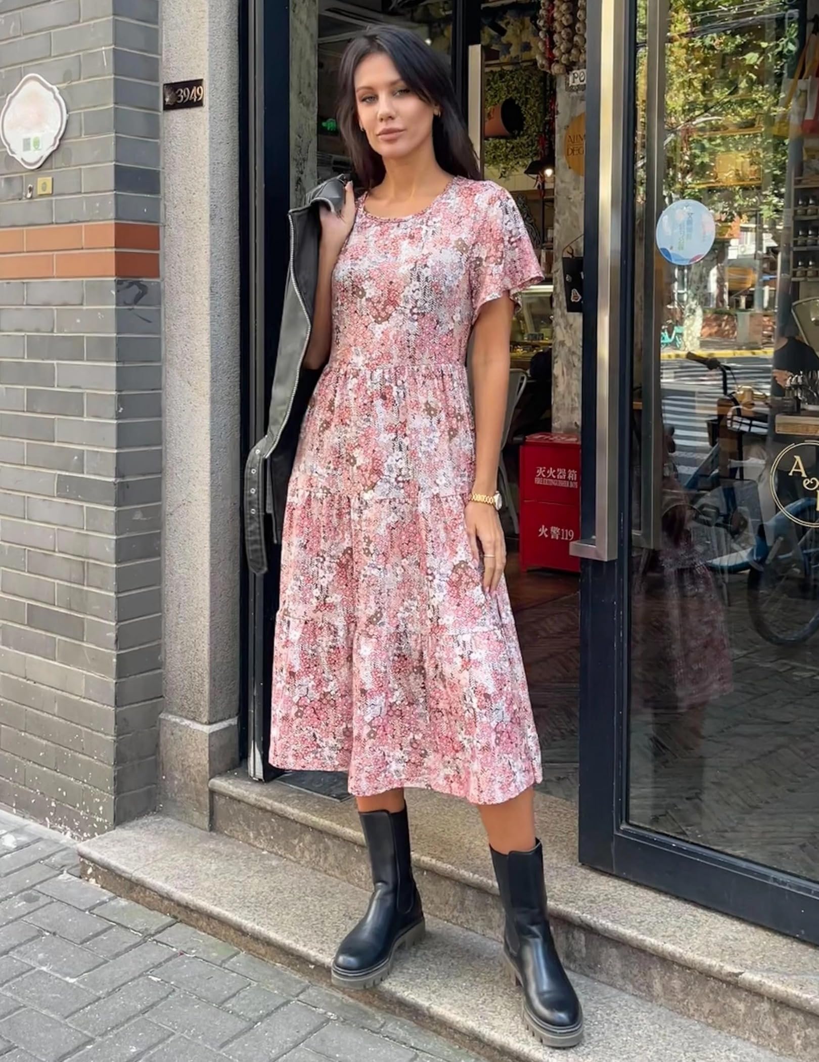 - 【Features】: This summer dress for women 2025 features a flutter short sleeve, crewneck, floral printed/solid color, flattering elastic empire waist, 2 side pockets, midi length and the tiered hemline make it look more pretty and cute.